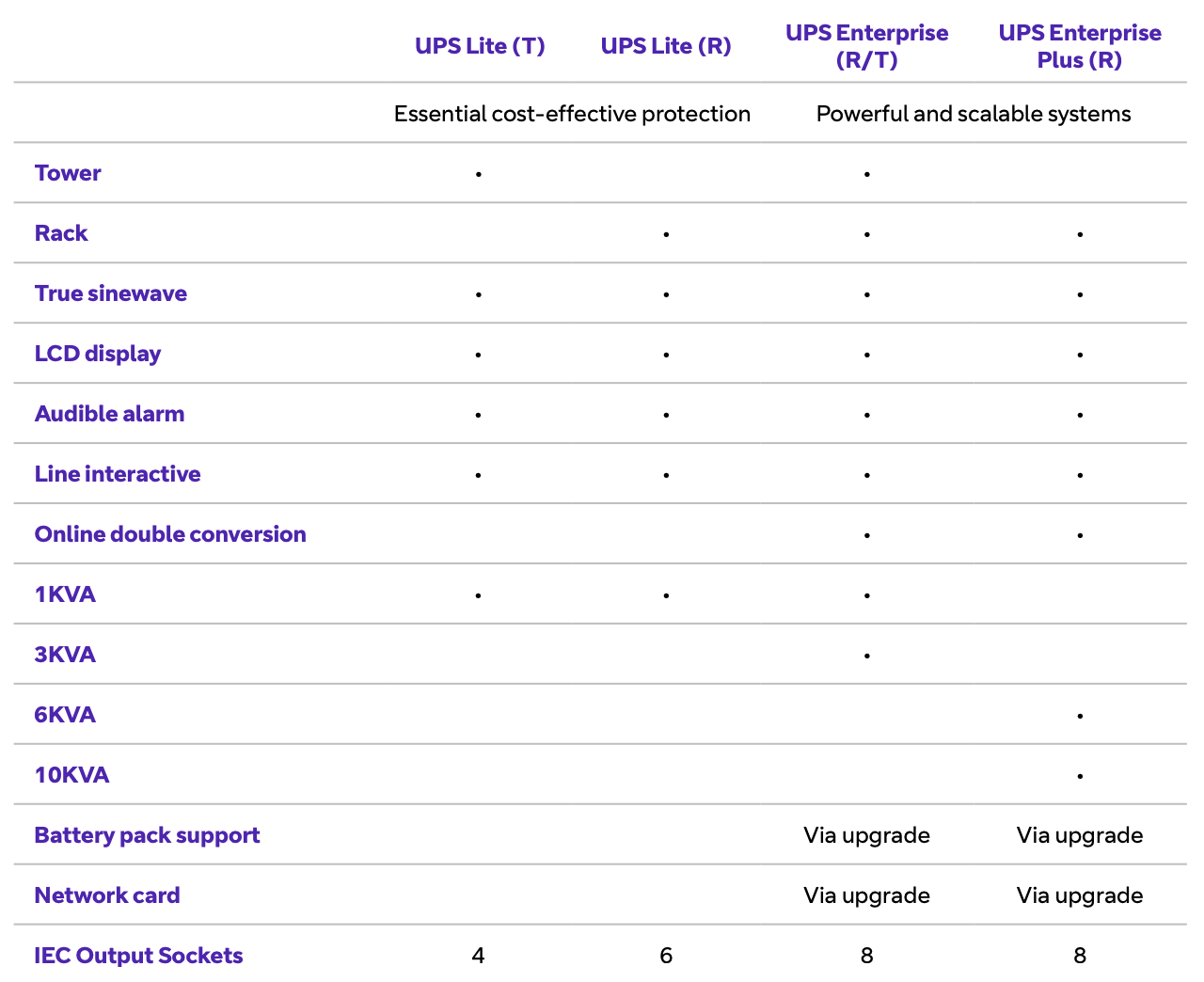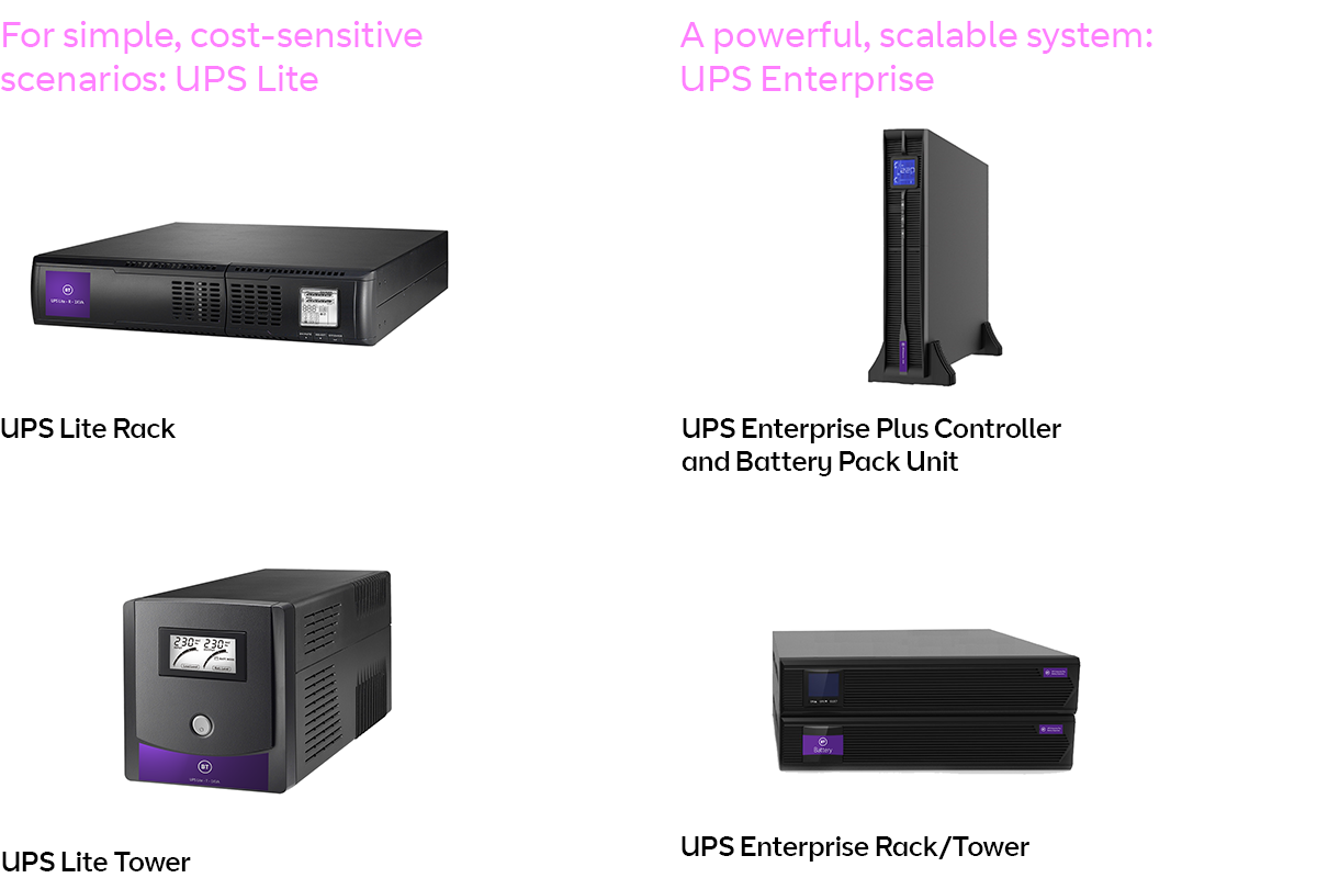 Pick from our two ranges. Choose UPS Lite for a simple and cost-effective option. Get UPS Enterprise if you need the ultimate back-up power. Add expandable battery packs to keep going for even longer if your power goes down.